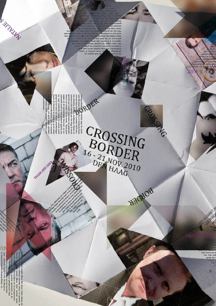 Crossing Border: Grenzen tussen muziek, literatuur en kunst vervagen. Wat is crossing border? Tussen welke werelden reis je? En wat houd het reizen tussen deze grenzen eigenlijk in?Wanneer je op reis gaat ga je grenzen over, je beland in een andere wereld, ontmoet andere culturen en spreekt nieuwe mensen, je maakt dingen mee die je van te voren niet bedacht had. Op het Crossing Border festival doe je dit ook, je reist tussen muziek en literatuur en laat je verrassen door artiesten en schrijvers die je nog niet eerder kende.