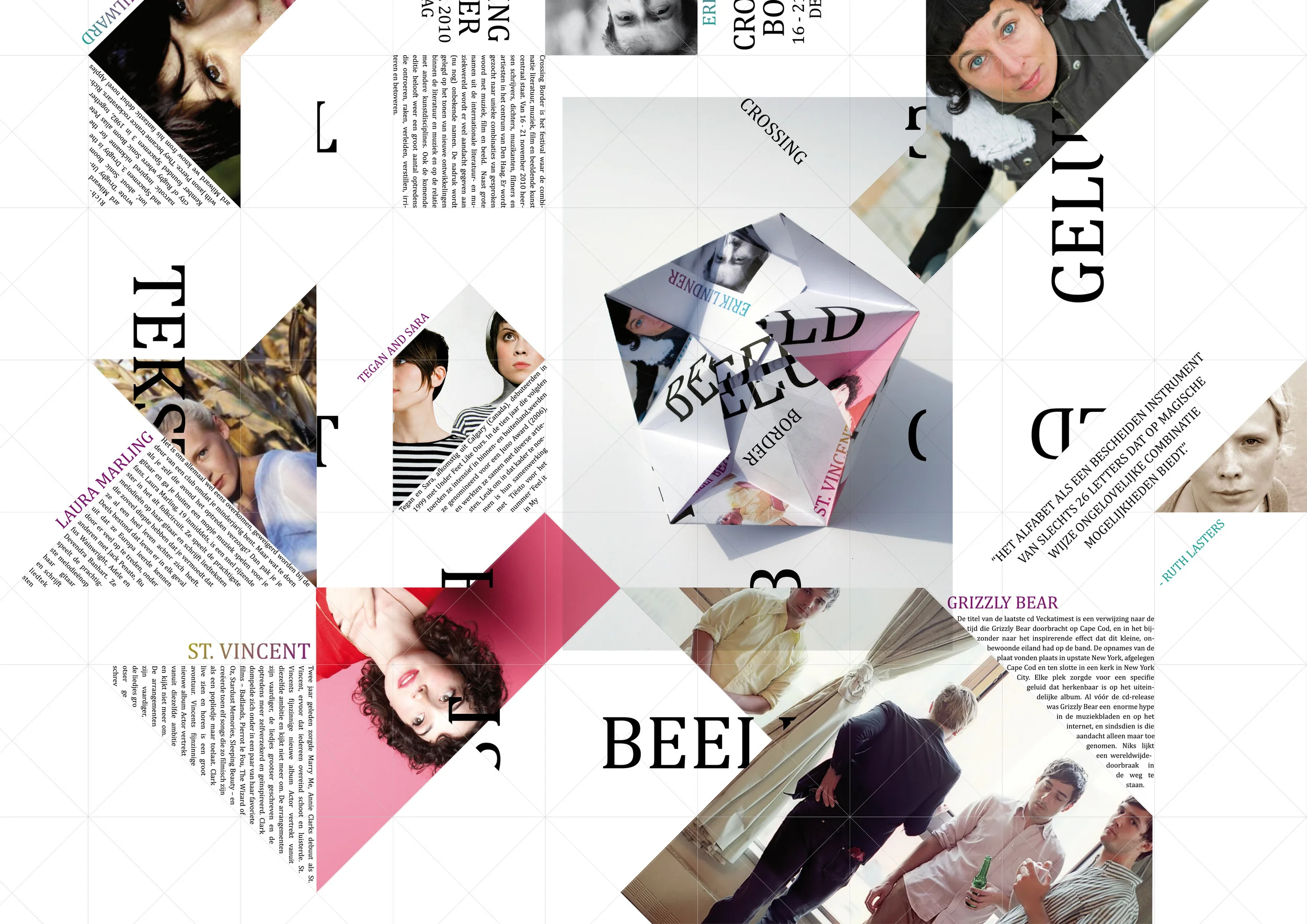 In de huidige identiteit van Crossing Border komt de versmelting of de oversteek tussen deze grenzen van literatuur en muziek niet echt naar voren. In de nieuwe identiteit wil ik de oversteek tussen werkelijke en fysieke grenzen koppelen aan de grens tussen muziek en literatuur. Een van de grenzen die je tijdens het festival over gaat is de grens tussen muziek en literatuur. Waar begint de muziek en waar eindigt literatuur? En waar komen deze werelden samen? Voor het maken van tekst (literatuur of songtekst) gebruik je slechts 26 letters waarmee je door middel van de plaatsing en samenstelling van de letters elke boodschap kunt formuleren. Voor het maken van muziek gebruik je een aantal noten die je door plaatsing op een notenbalk elke melodie of ritme kunt geven.